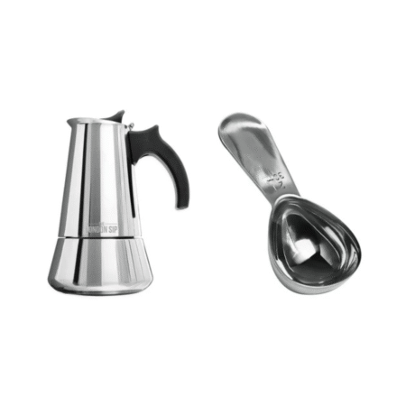 London Sip Espresso Maker & Coffee Spoon Bundle, 10 Cup, Silver