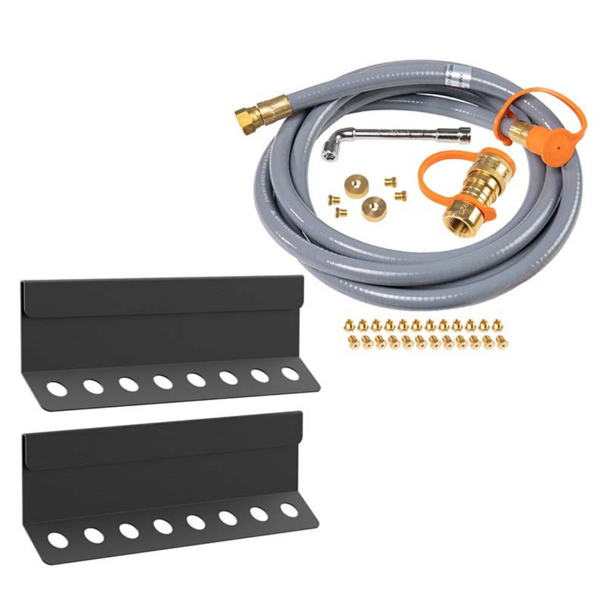 To convert to natural gas, you will need to switch the orifices in your valves with the given orifices that are the proper size for natural gas, as well as switch out your regulator with the provided natural gas hose. Please make sure to be gentle when removing and replacing your orifices to avoid stripping out your valves.