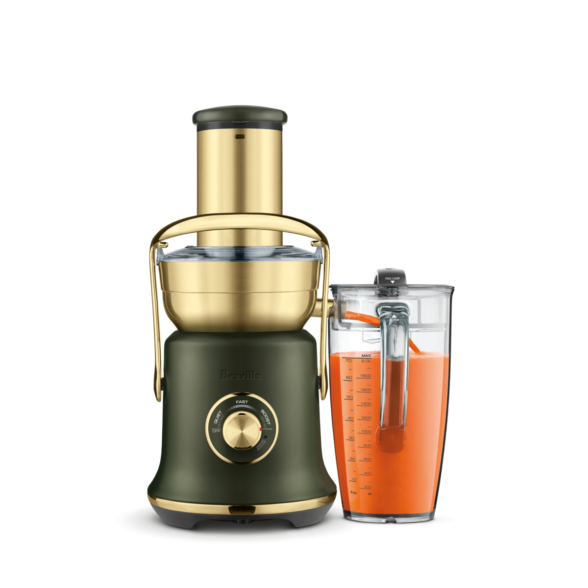 Juice more, store more, clean less. Featuring an even bigger 3.5 inch feed chute, the Juice Fountain® Cold XL can extract 70 fl. oz. of nutrient rich juice up to 5x faster than a ‘cold press’ machine.