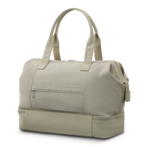 Duffel bag in Canvas and Colombian leather trim nicely decorated with perforated leather panels. You’ll want our Canvas weekender to go everywhere with you! This elegant duffle has a reinforced and comfortable handle that attaches with a snap. It has a removable shoulder strap and well-thought-out interior make it an ideal bag for your weekend getaways.