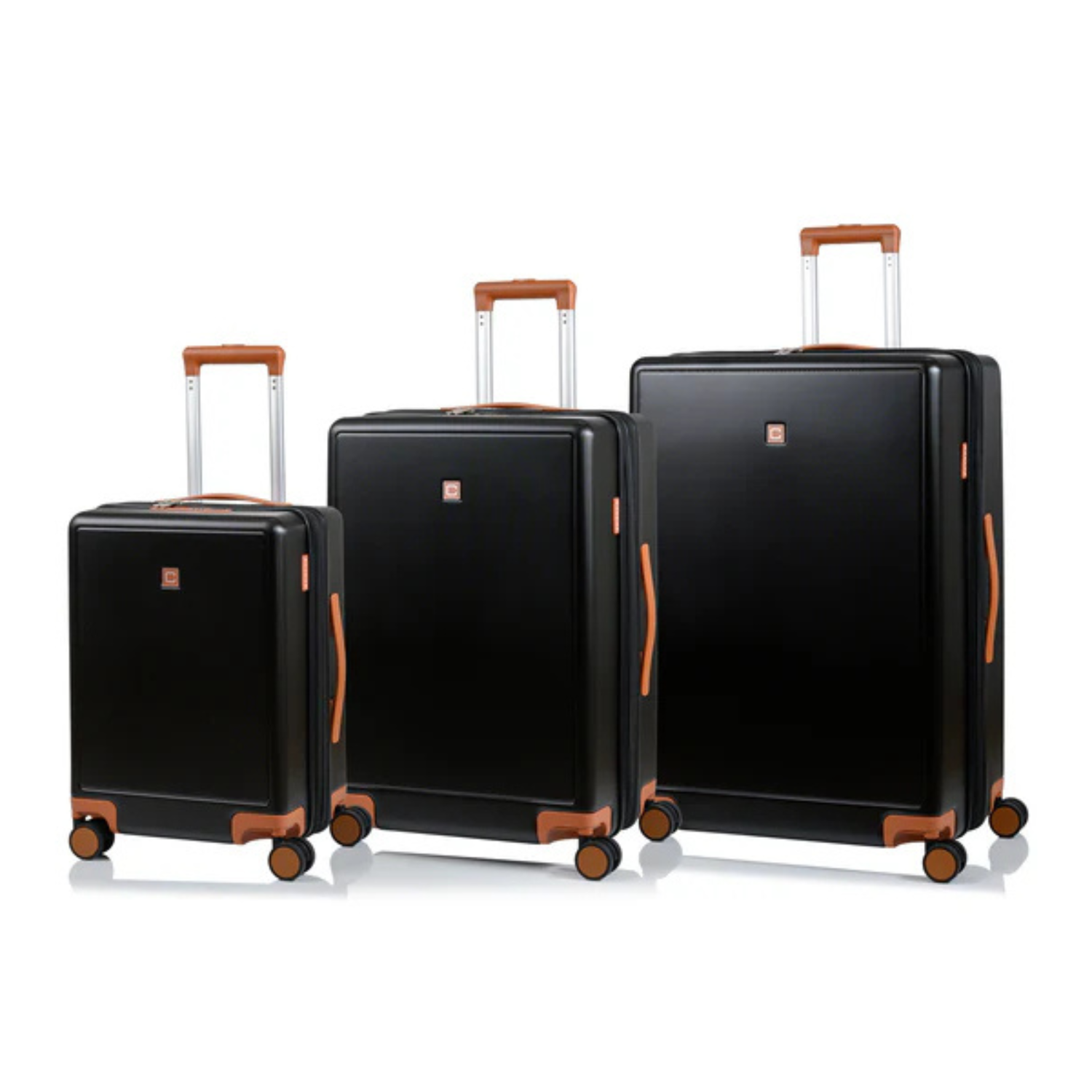 Introducing the Vintage Muse Collection, a perfect blend of vintage charm and modern flair. This meticulously designed 3-piece set is available in four elegant colors, with two featuring black accents and two adorned with tan accents. The Vintage Muse Collection offers an array of premium features, including on-the-go charging, recessed TSA locks, and expandability across all sizes. Ideal for both individuals and families, this collection ensures adaptability while maximizing storage efficiency through its clever nesting design.