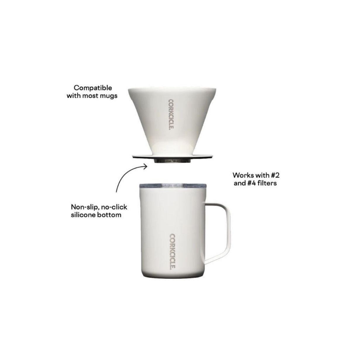 Add a touch of style to your brewing ritual with the Pour Over Set, the perfect gift for at-home baristas and coffee connoisseurs alike. The set includes 1 Pour Over, plus a matching insulated 16oz Coffee Mug. Our double-walled stainless steel Pour Over works with #2 and #4 filters, and has a no-slip, no-click silicone bottom. It’s also available individually, and fits on most mugs.