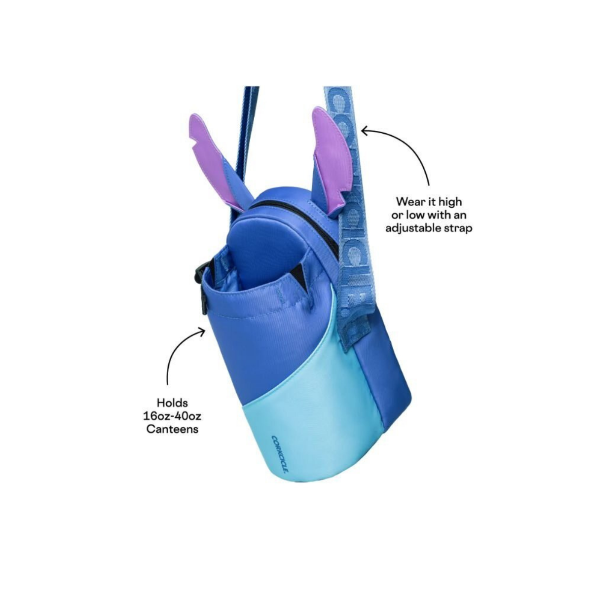 Keep your pockets light, your hands free, and your style on point with our best-selling character slings. These comfy crossbody carry-alls includes unique character features and an adjustable strap. The Sling securely holds your favorite Corkcicle Canteen in the front pouch, while cash, cards, phone, and keys are securely zippered in the back pocket.
