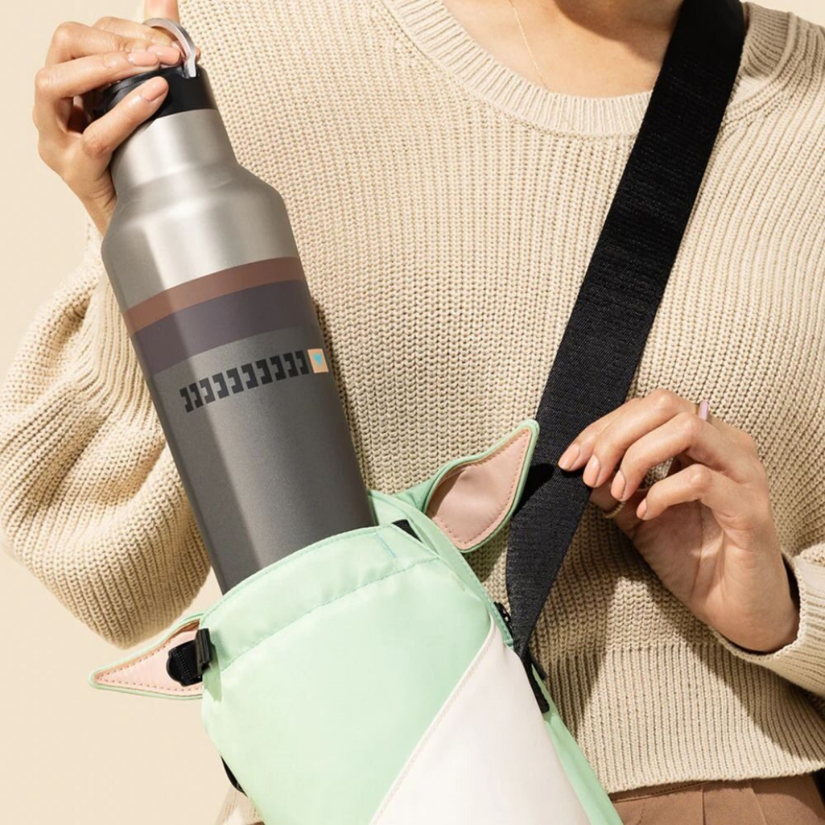 Keep your pockets light, your hands free, and your style on point with our best-selling character slings. These comfy crossbody carry-alls includes unique character features and an adjustable strap. The Sling securely holds your favorite Corkcicle Canteen in the front pouch, while cash, cards, phone, and keys are securely zippered in the back pocket. *no canteen or other drinkware is included.