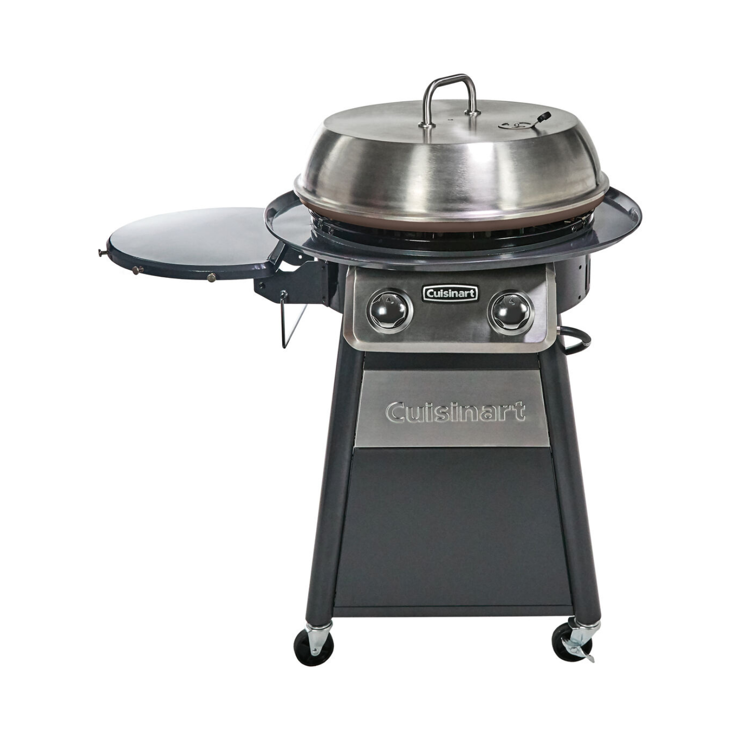Experience 360° of Griddle Cooking Versatility! Whether you are cooking for a small crowd or a large party, the Cuisinart 360° Griddle Cooking Center will amaze any audience. Breakfast, lunch, and dinner, the 22-inch diameter cooking center can handle it all! It features a 360° grease pan and rear grease cup, allowing easy access and clean-up. The cooking center comes with a quick-access paper towel holder. It also includes a stainless steel lid with an integrated vent, enhancing the features of a standard griddle! This lid creates versatility to steam, roast, smoke or warm! From eggs and pancakes to burgers or stir-fry, the Cuisinart 360° Griddle Cooking Center allows you to explore your culinary creativity.
