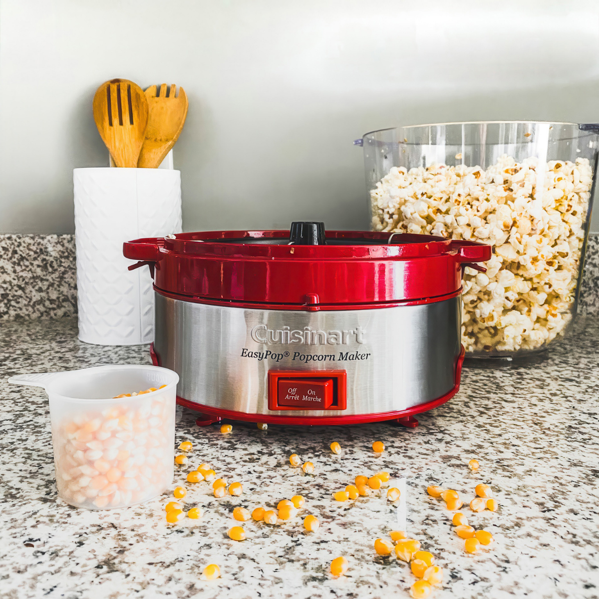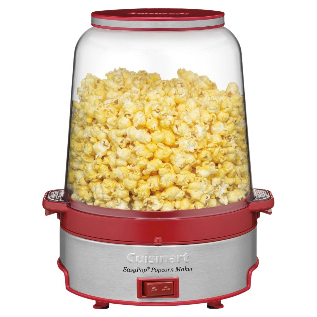 The Cuisinart EasyPop Popcorn Maker makes it easier than ever to pop crunchy homemade popcorn. The Cuisinart EasyPop Popcorn Maker pops up to 16 cups and has special vents in the popping bowl to let moisture escape. Popcorn lovers can select the desired amount of oil and salt to make popcorn just the way they like it. When popping is complete, they can serve right from the popping bowl. The Cuisinart EasyPop Popcorn Maker operates with the simple flip of a switch. Cleanup is easy too: All removable parts are dishwasher safe. Easy! Fast! Fun!