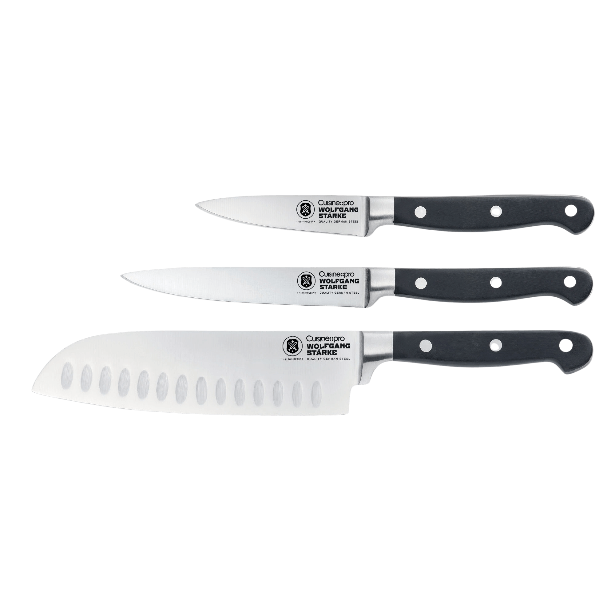 A high-end addition to any serious kitchen, Cuisine::pro® WOLFGANG STARKE knives are considered best-in-class for a reason. Each full-tang knife in this iconic collection is forged from premium quality German stainless steel (1.4116) that is engineered to manage vigorous daily use with ease, all while providing excellent corrosion and wear-resistance. The double-bevel, tapered blade is ice-hardened and double-sharpened to provide WOLFGANG STARKE’S signature strength and durability.