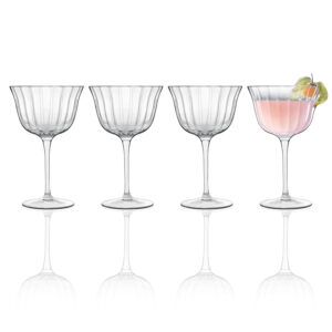These crystal tumblers, a taller version of our popular Rocks Glasses, are designed with clean lines, classic etching, and tall walls to elevate any drink, whether it’s a cocktail, mocktail, or mixed beverage. They are scratch resistant, lead-safe, and built to last. Crafted in Germany using an ion-toughening technique for enhanced durability, they come in a set of four and are stackable for easy storage.
