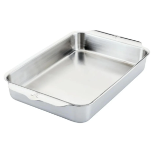 Combining exceptional craftsmanship and long-lasting performance, Hestan Provisions are the essential tools every well-stocked kitchen needs to create culinary perfection. Ideal for everyday cooking and holiday entertaining, our chef-inspired and purpose-built Classic Roasters are the perfect complement to any Hestan collection of cookware. Durable, bonded three-ply construction features a conductive aluminum core for even heat distribution sandwiched between layers of stainless steel for a safe, non-reactive cooking surface finished with ultra-durable, premium nonstick. The flush rivets provide easy cleanup and beautiful, ergonomically designed handles allow you to move your roaster from oven, to stovetop to serving table efficiently and elegantly. The stainless steel rack insert provides a boost of air circulation for incredibly even oven baking and roasting of choice cuts and whole fish and poultry, and both the roaster and rack are induction suitable and oven and broiler safe up to 500°F.