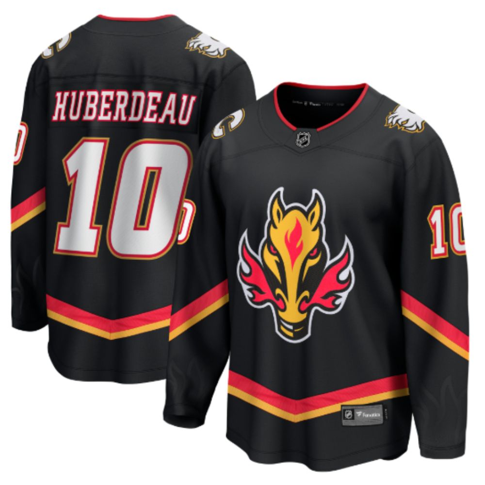 Give your Calgary Flames fandom an upgrade with this Jonathan Huberdeau Alternate Premier Breakaway Player Jersey from Fanatics. This Jonathan Huberdeau jersey is crafted with FanTex, a performance midweight fabric that has the optimal drape and range of motion, ensuring both comfort and flexibility. Featuring a more tailored fit for improved comfort, this jersey also utilizes FanShield moisture management technology to keep you cool, dry and comfortable all game long.