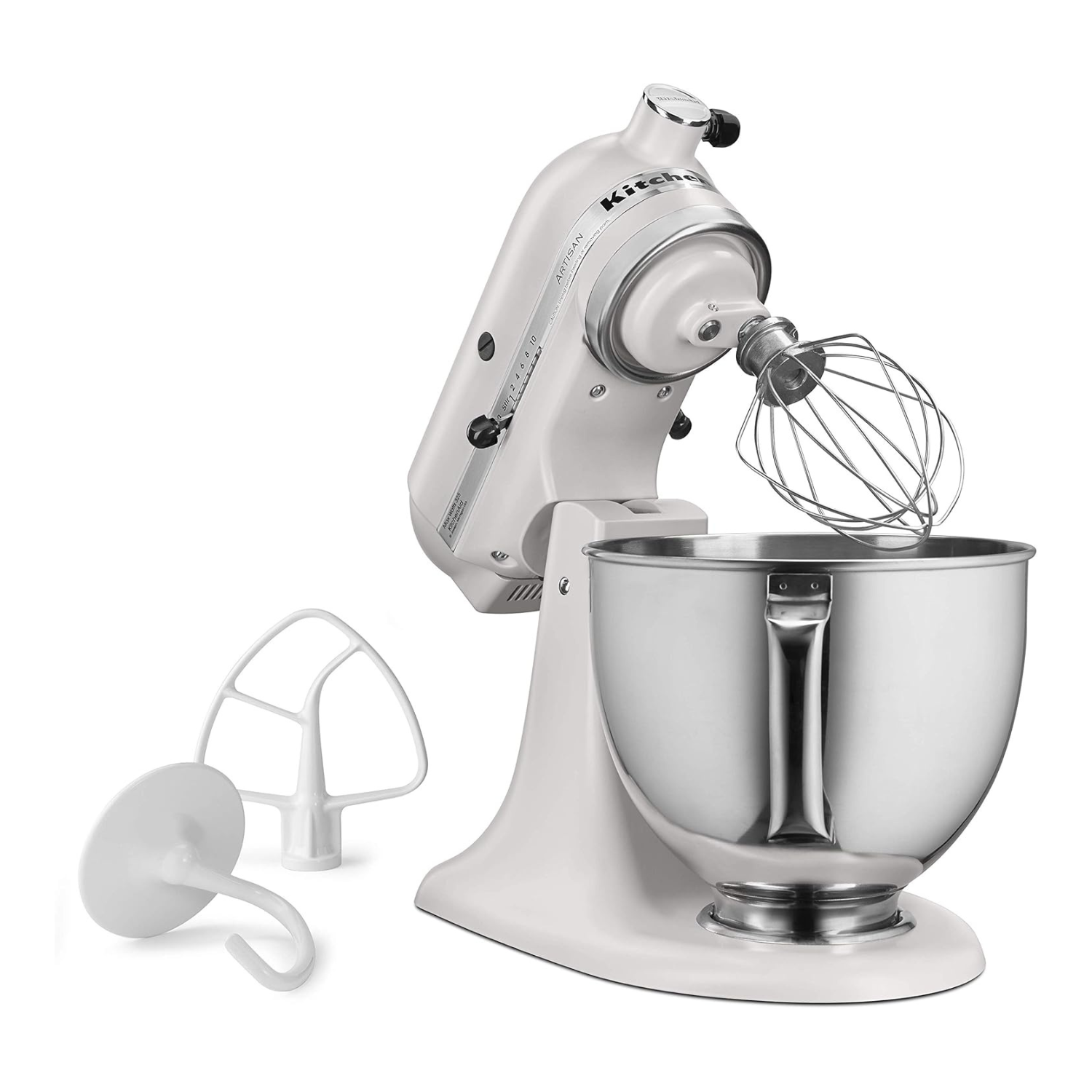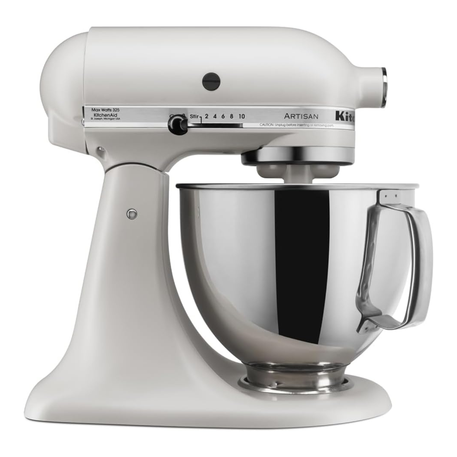 Whether you need 9 dozen of your signature chocolate chips cookies* or several pounds of shredded chicken for Taco Tuesday, the KitchenAid® Artisan® Series 5 Quart Tilt-Head Stand Mixer with Premium Accessory Pack has the capacity and tools for every occasion. This model includes both a 3 and 5 quart bowl, so you can do more -mix up batter in one and then whip up a silky frosting in the other. In addition, the exclusive accessory pack includes a flex edge beater, pastry beater, dough hook, wire whip and redesigned secure fit pouring shield. This durable tilt-head stand mixer was built to take it all on, and features 10 speeds to gently knead, thoroughlymix andwhip ingredients for a wide variety of recipes. *Using the flat beater; 28g dough each