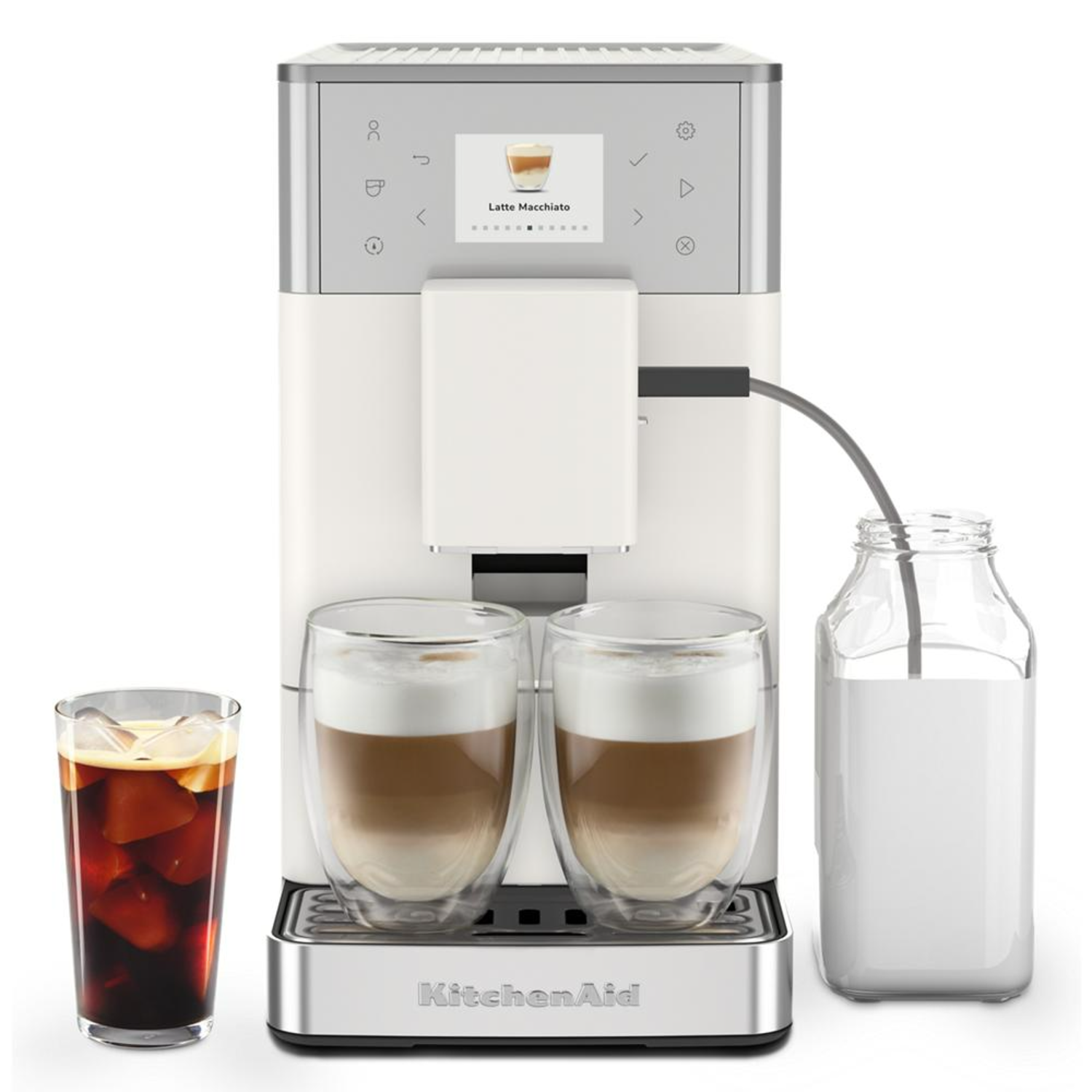 Introducing the new fully automatic espresso machine with iced coffee. Brew it hot or make it iced with over 15+ pre-set recipes. With IntelliGrind Technology, unlock the best in every bean; Our built-in grinder adapts to every bean type and roast automatically—no manual adjustments needed. Enjoy barista-quality milk for every drink; Whether you enjoy a velvety cappuccino or a smooth flat white, our advanced Auto Milk System guarantees the ideal/perfect balance of milk and coffee with every cup.