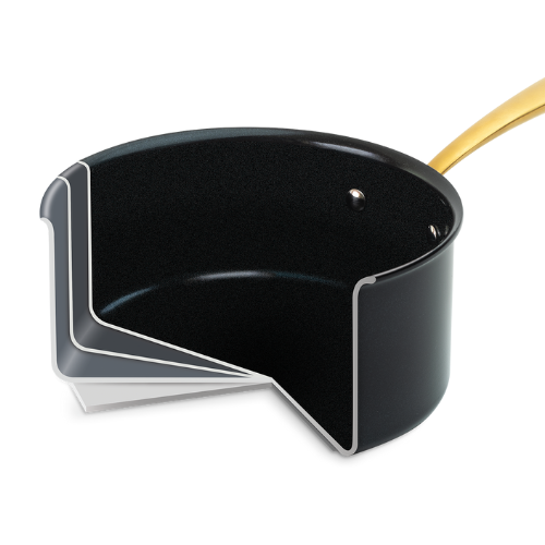Discover the Lagostina Eleganza Ceramic Cookware, a 10-piece collection that blends exquisite design with culinary innovation. Engineered with a 2-coat advanced ceramic non-stick interior, it ensures effortless cooking and cleanup, free from PFOA and PTFE. The sleek black metallic surface resists stains and facilitates food release with minimal oil, promoting healthier meals. With a ceramic coating 20 times harder than traditional non-stick, it allows the cookware to withstand higher temperatures. Crafted with a thick aluminum body, this cookware heats up swiftly and distributes heat evenly for superior cooking results, complemented by stay-cool gold stainless steel handles for a secure grip. Oven safe up to 450°F/ 232°C, it features a solid induction base for compatibility across all cooktops, exuding elegance in every detail.