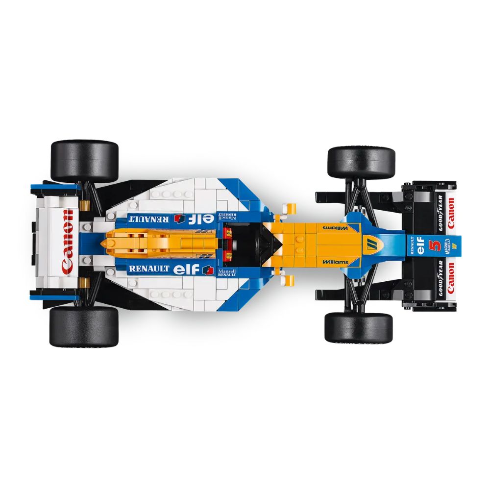Hail the history of F1 innovation with the LegoIcons Williams Racing FW14B & Nigel Mansell home and office desk decor model building kit for adults. Craft a replica of the legendary F1 race car that propelled Nigel Mansell to victory in the 1992 Formula 1 World Championship. Complete with a Nigel Mansell minifigure, this premium display model makes a captivating centerpiece and a great holiday or birthday gift for fans of F1. The Lego Icons Williams FW14B features working steering, wide rear slick tires with printed Goodyear lettering and a detailed engine, plus a display stand with vehicle details and stats. The Nigel Mansell minifigure comes with a helmet and a podium-style display stand featuring a photo and a quote from the legendary driver. This set contains 799-pieces.
