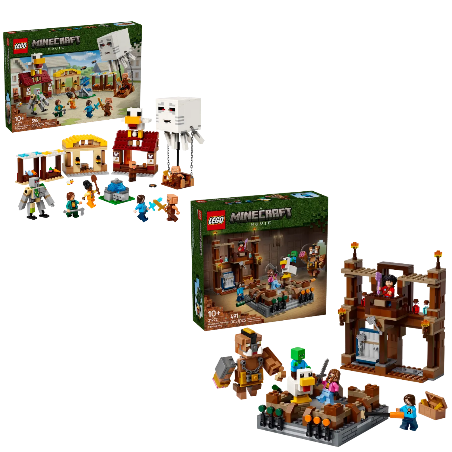 The Woodland Mansion Fighting Ring (21272) set is a high-quality building toy for kids. It makes a great Minecraft® gaming gift for boys and girls and fans of the Minecraft movie aged 10 and up. The LEGO® Minecraft building set features toy figures from the movie – Steve, Garrett, Henry, a baby zombie, a chicken jockey and a posable great hog – plus weapons and potions that kids can use as they recreate battle scenes and explore adventures of their own. The set features a functional fighting ring with score-keepers and handles kids can attach to the fighters. There’s also a mansion facade with a removable chest and weapons rack.