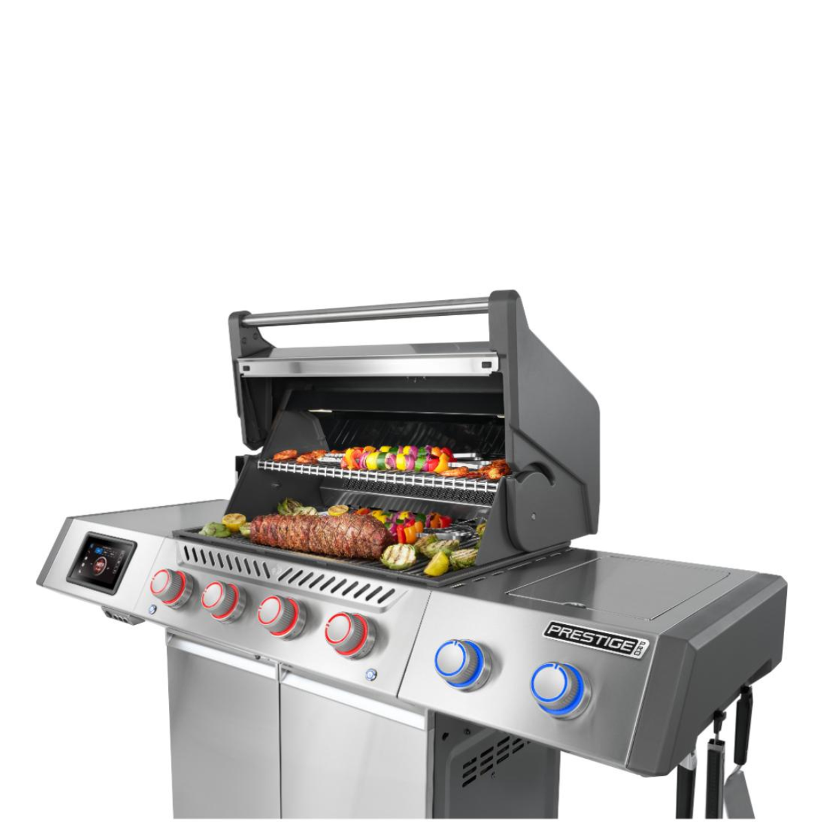 Meet the Prestige® PRO 500, where precision engineering and everyday convenience come together in a grill designed for real cooks and real results. Crafted from high-performance stainless steel and loaded with smart features, this grill is built to impress. Experience steakhouse-quality sears in seconds with the infrared SIZZLE ZONE® , heating up to 1800°F in 30 seconds. Added HeatBoost™ Reflector technology reflects heat back up to ensure heat is not lost and improves evenness of heat. Cook with confidence at any hour thanks to integrated hood lights and LEDlit control knobs with Smart Mode guidance. Metal knobs with dual LED rings offer intuitive visual feedback, helping you grill with precision even in low light. Thoughtful details like hidden warming rack storage, sturdy side shelves, built-in hooks, and a bottle opener add utility without clutter. Whether you’re perfecting a weeknight meal or hosting a weekend crowd, the Prestige® PRO 500 delivers smart performance, bold flavour, and total control.