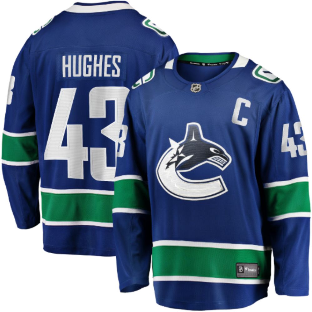 You can experience the same excitement you feel while watching the Vancouver Canucks play every time you put on this Quinn Hughes Premier Breakaway Player jersey from Fanatics. This exclusive piece of gear features bold colors and graphics, modeled after the jersey your favorite player wears, that will let everyone know you’re a devout fan. The fabric technologies built into this Vancouver Canucks jersey will also ensure you stay comfortable through every game this season.