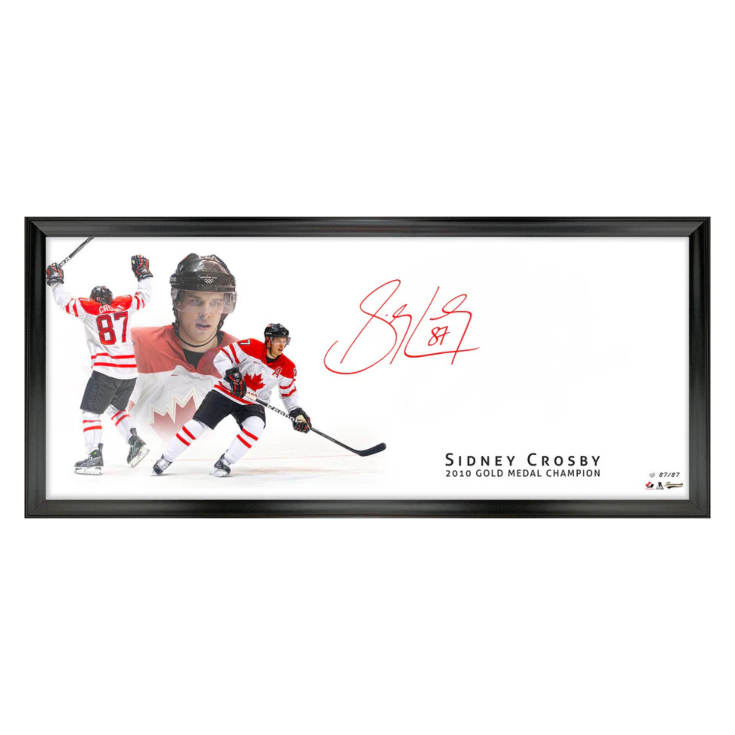 This print of Sidney Crosby comes personally autographed by Sidney Crosby before being professionally framed. This print comes with a certificate of authenticity and a hologram from Frameworth to ensure authenticity. Signatures may vary. Made in Canada. Finsihed size: 48×21″
