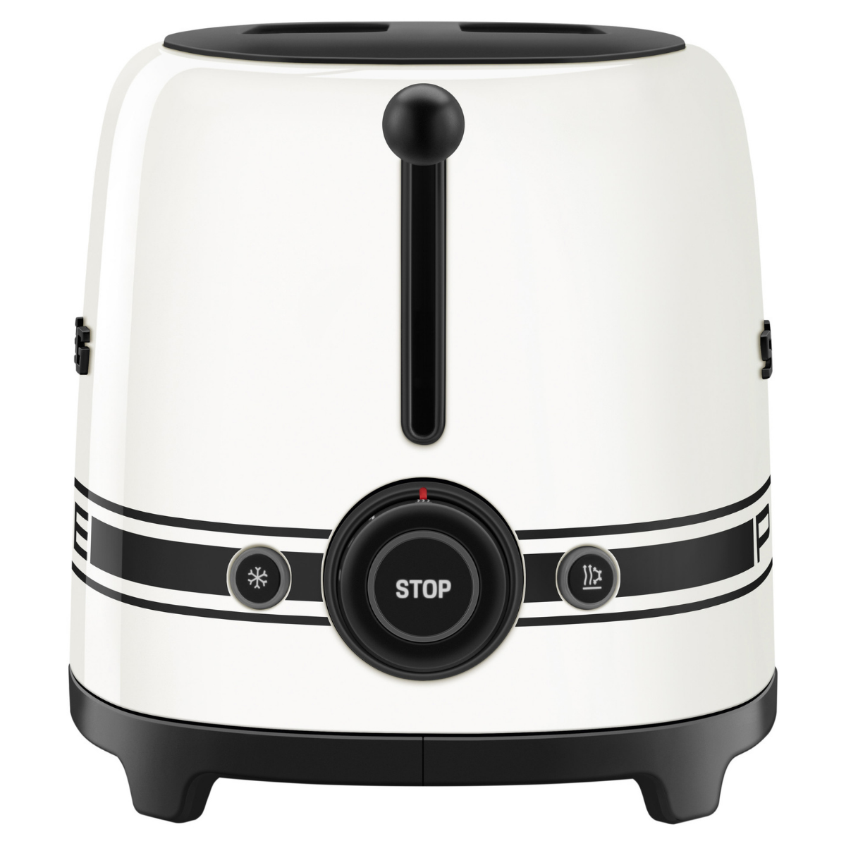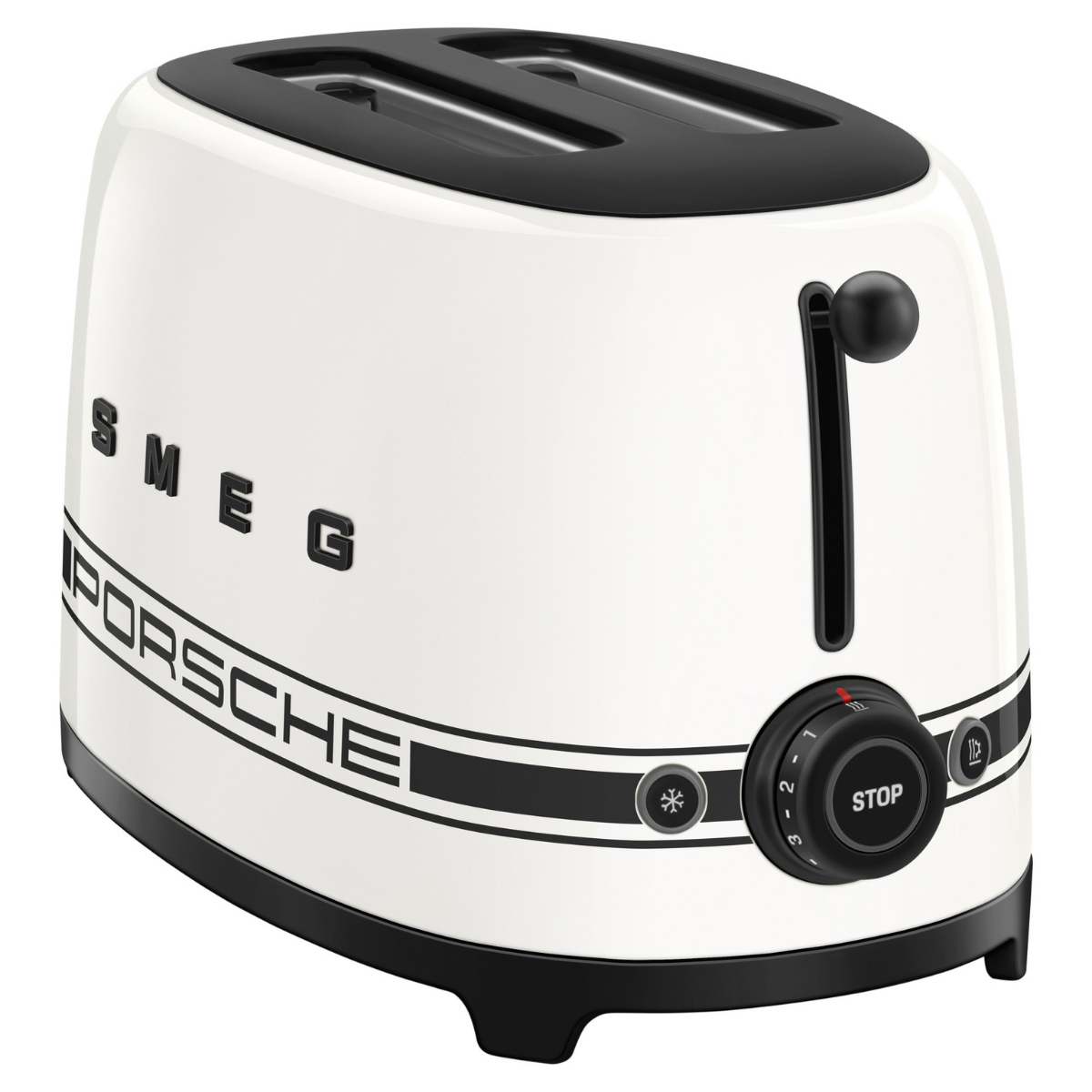 The Porsche x SMEG Toaster combines iconic design and functionality. Inspired by 50’s style, it features the signature Porsche stripe across the body and refined details like matte black accents. The custom-designed interface—featuring the numbered control knob and dedicated function buttons—adds a distinctive and sporty touch