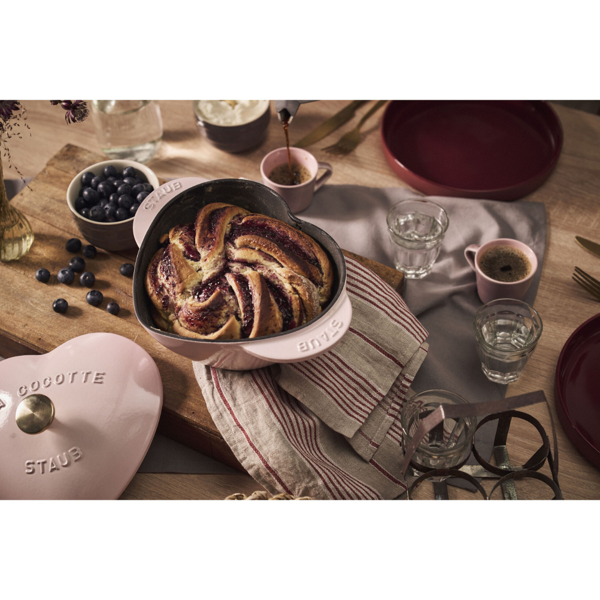 A heart-shaped Cocotte, made from durable cast iron to symbolize stability and reliability, and coated in a light pink glaze that stands for the rose-tinted glasses of young love – what could be a better wedding gift? You can also give it to your special someone for Valentine’s day or start your own tradition of baking a heart-shaped brioche in it on every anniversary.We can’t guarantee life will be all moonlight and roses, but we do know this: A meal lovingly prepared and beautifully served can go a long way in navigating the rough patches every relationship will encounter. After all, everything looks brighter after a delicious meal.