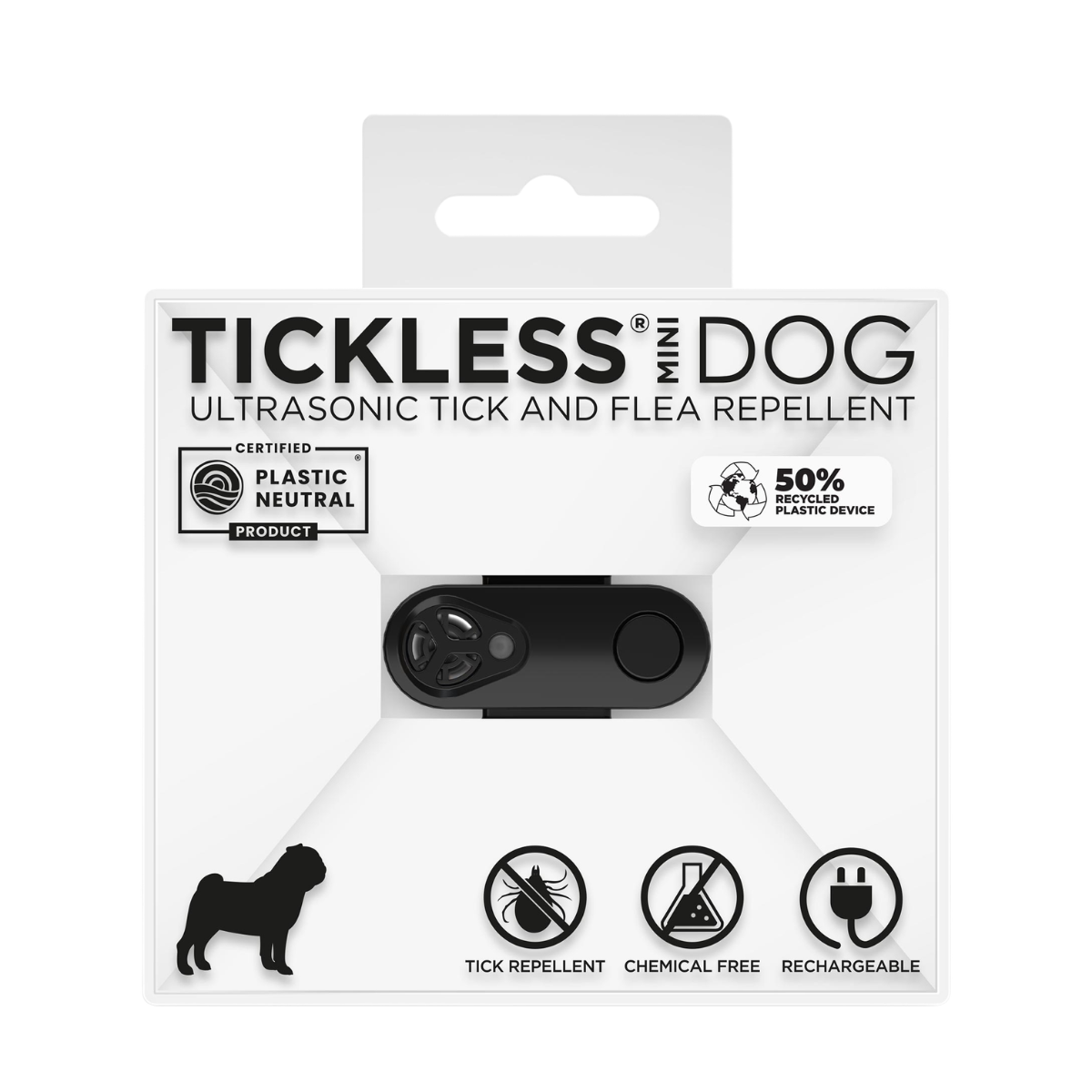Tickless® Mini effectively protects your pet without chemicals. Cutting-edge design, with all-inclusive protection for even the smallest pets in the city or out. Oh, and it’s also rechargeable so you can protect your loved ones longer! Tickless® Mini is eco-friendly and budget-conscious, thanks to its rechargeable nature. It’s the smart choice for the modern eco-warrior. The Tickless Mini provides protection for dogs of all sizes with a new, modern design and unchanged effectiveness. Its durable construction makes it ideal for long-term use. Tickless® Mini is an environmentally conscious choice that doesn’t harm nature while protecting you from ticks. The device emits ultrasonic pulses that are imperceptible to humans and pets but disturb ticks and fleas, preventing them from attaching to your pet. Your pet and the environment are both safe. The black product is also much more environmentally friendly because it is made of 50% recycled plastic.