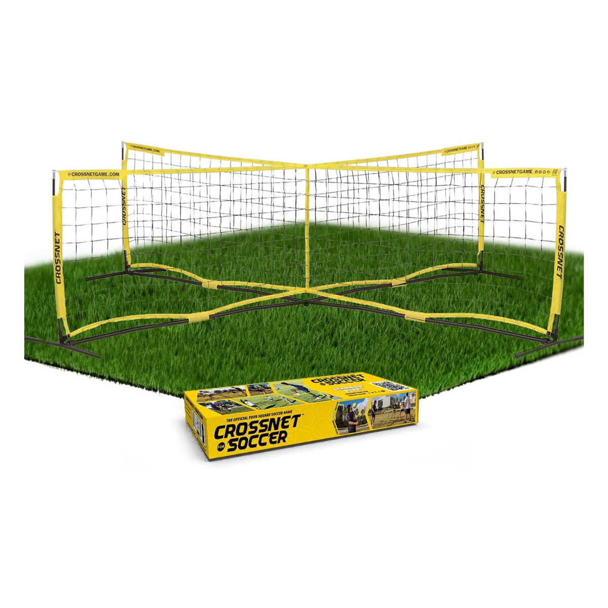Kick your backyard fun into high gear with CROSSNET Soccer, the world’s first four square game for soccer lovers! This exciting twist on a playground classic challenges players to use their feet, chest, and head to keep the ball in play while outsmarting opponents across four connected squares. Perfect for parks, fields, and backyards, CROSSNET Soccer is quick to set up, easy to learn, and endlessly competitive. It’s great for players of all ages and skill levels, whether you’re training your footwork or just having fun with friends. Get ready to run, pass, and score in the ultimate soccer showdown! Includes: Support structure, net, boundary lines, 4 stakes, carry bag